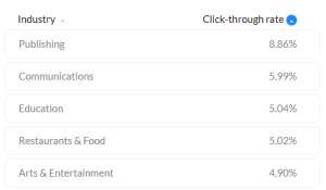 Aqui estão as cinco principais indústrias para CTR do relatório de E-mail Marketing Benchmarks (Q2 2018).