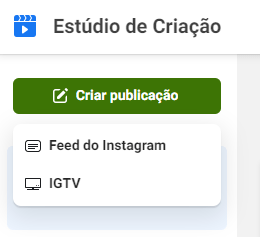 Alterne seu Estúdio de Criação para o Instagram, na parte superior da tela.