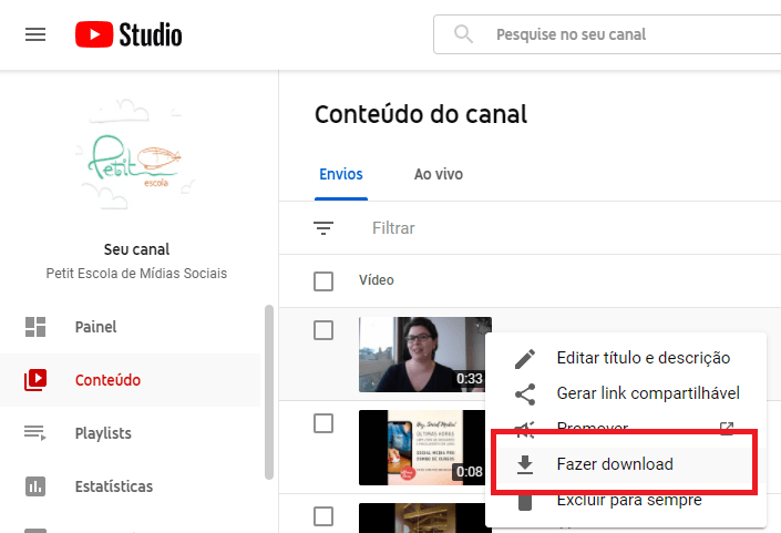 Se você está fazendo a publicação pela primeira vez, você já tem esse arquivo em mãos. Mas o que fazer se o vídeo estiver publicado no seu canal e você não tem o arquivo original?